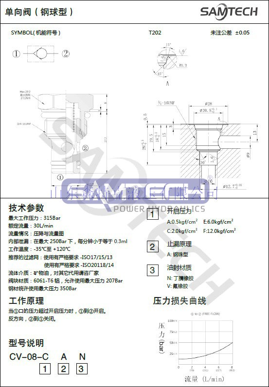 插裝式單向閥CV-08/DF06(鋼球/錐閥)液壓螺紋插裝閥螺紋單向閥