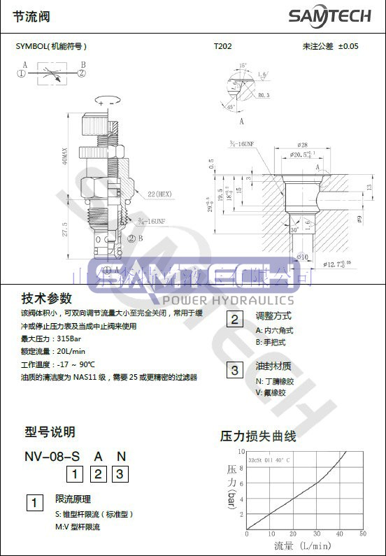 節(jié)流單向閥NV08液壓插裝式節(jié)流閥/流量控制閥 螺紋式節(jié)流閥
