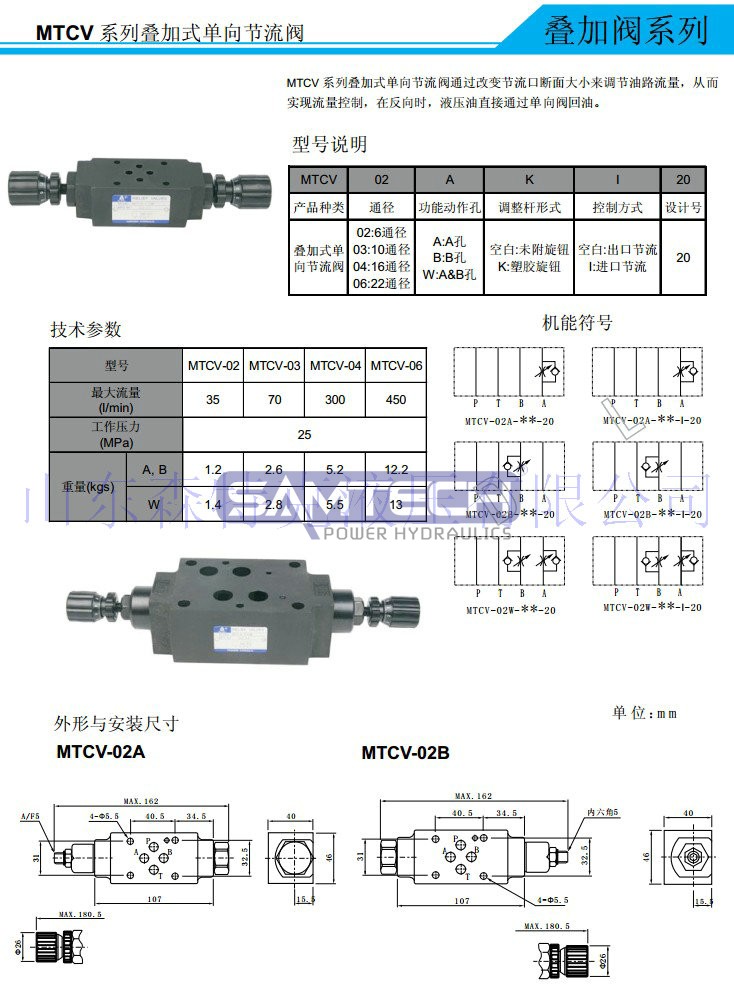 疊加閥MTCV-02W 液壓疊加式液控單向閥 節(jié)流閥