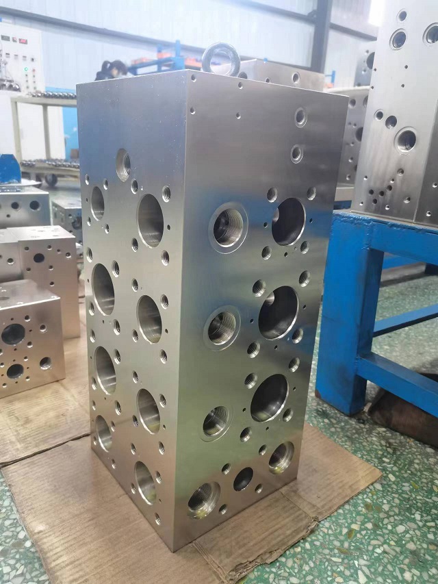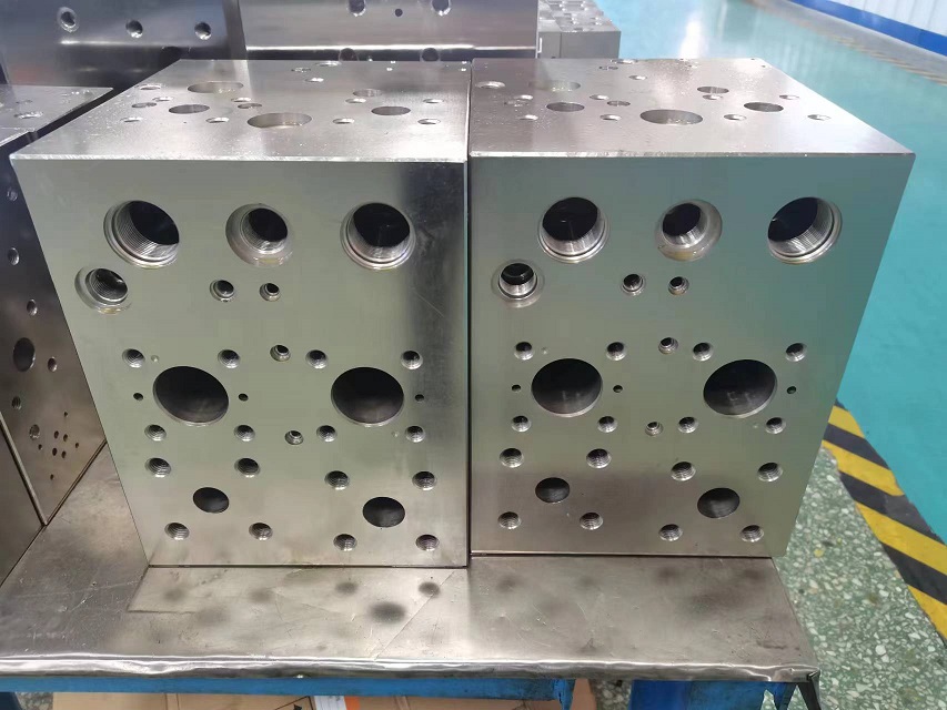 路塊是將分散的液壓油路集合在一起的集合體。油路塊簡單的說就是控制液壓油工作的一個方塊。通常為金屬制作。對于每一個液壓系統(tǒng)均需要按照液壓原理圖單獨設(shè)計油路塊。其優(yōu)點是簡化液壓系統(tǒng)的安裝、檢修、更換以及后期的維護保養(yǎng)。